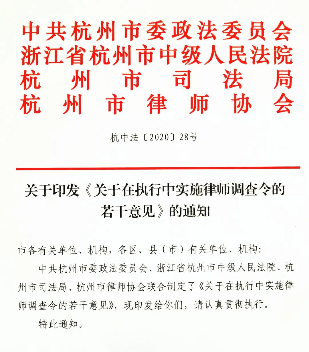 【浙丰实务】杭州中院:关于在执行中实施律师调查令的若干意见