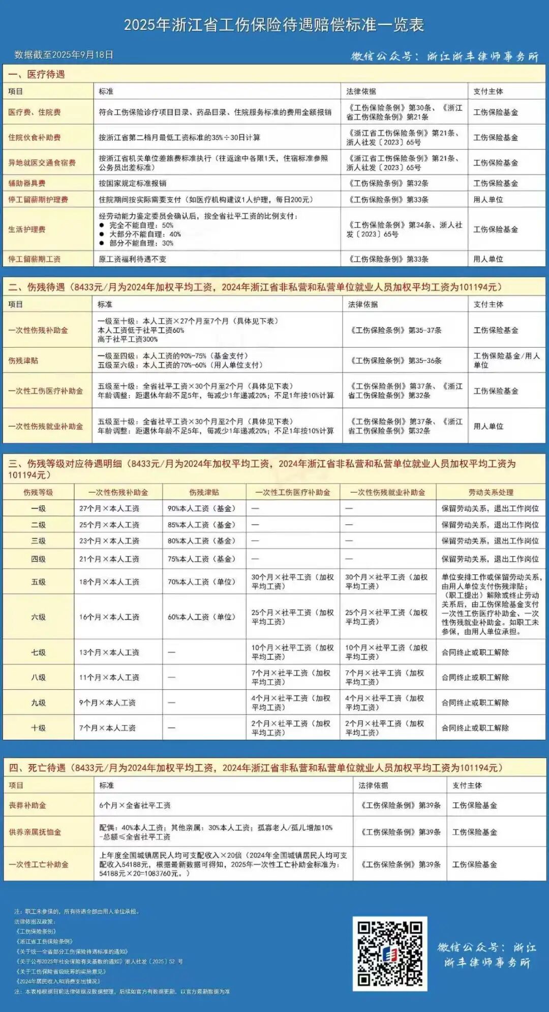 【浙丰实务】浙江省工伤赔偿标准明细表(2026年10月前适用)